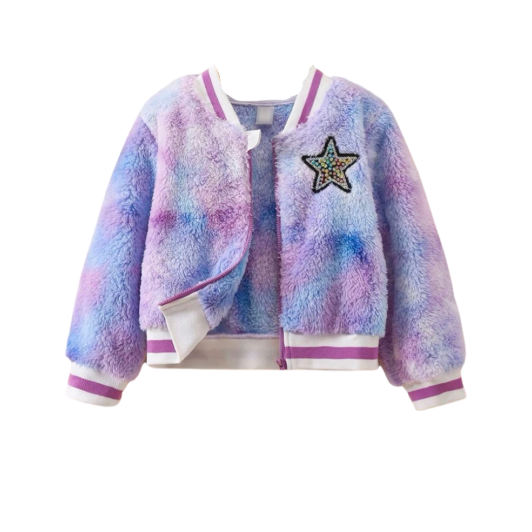 Bomber jacket de peluche super suave con parche de estrella con lentejuelas.